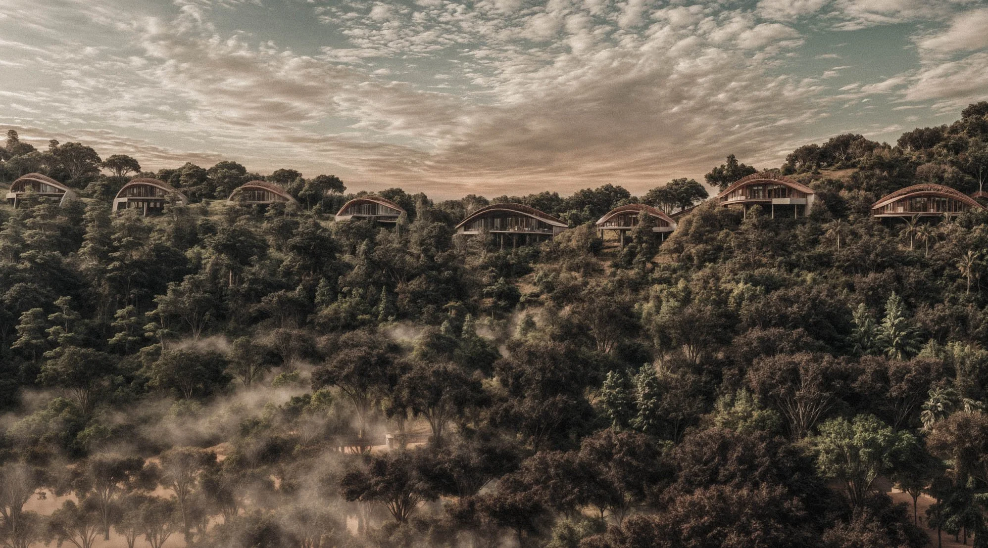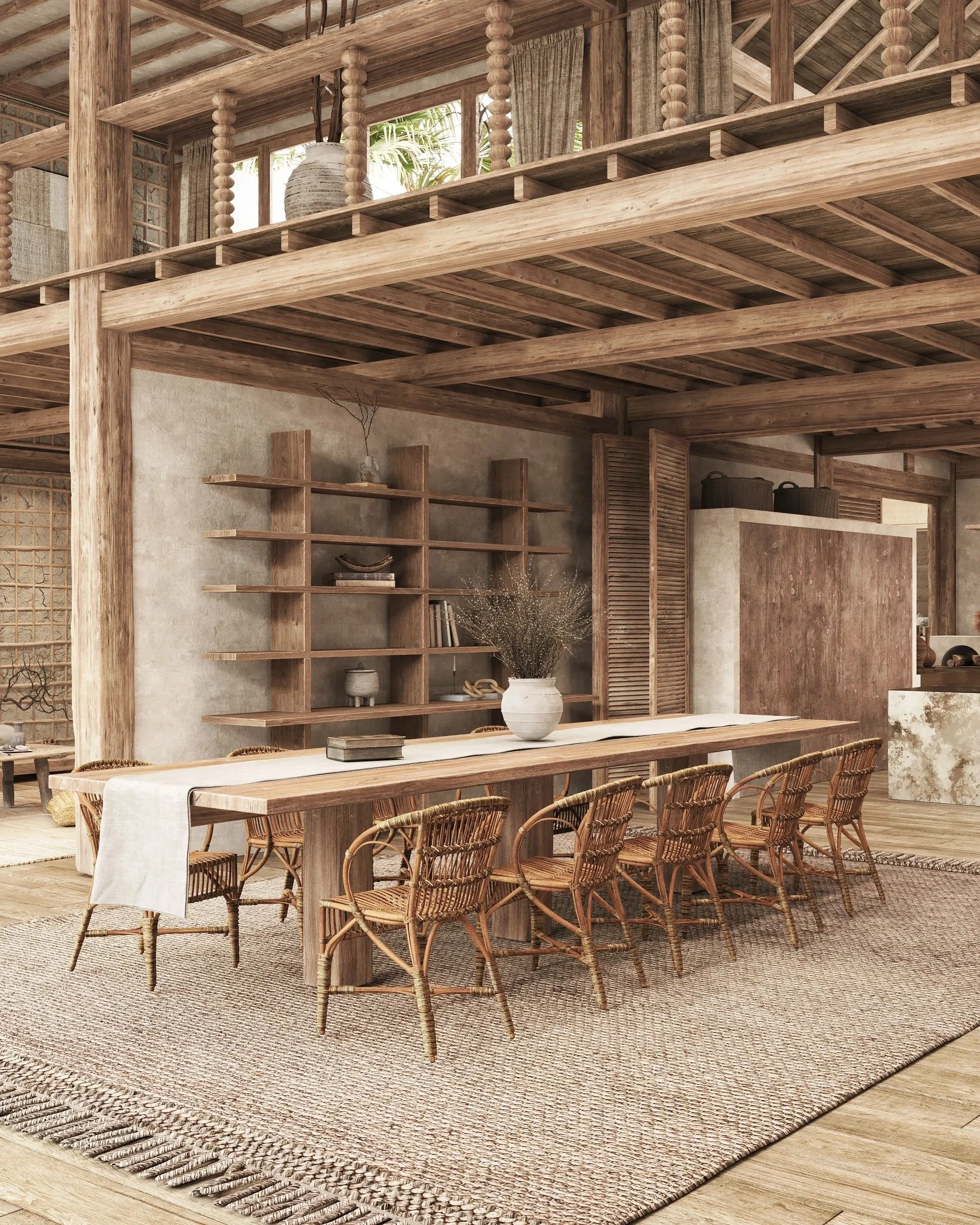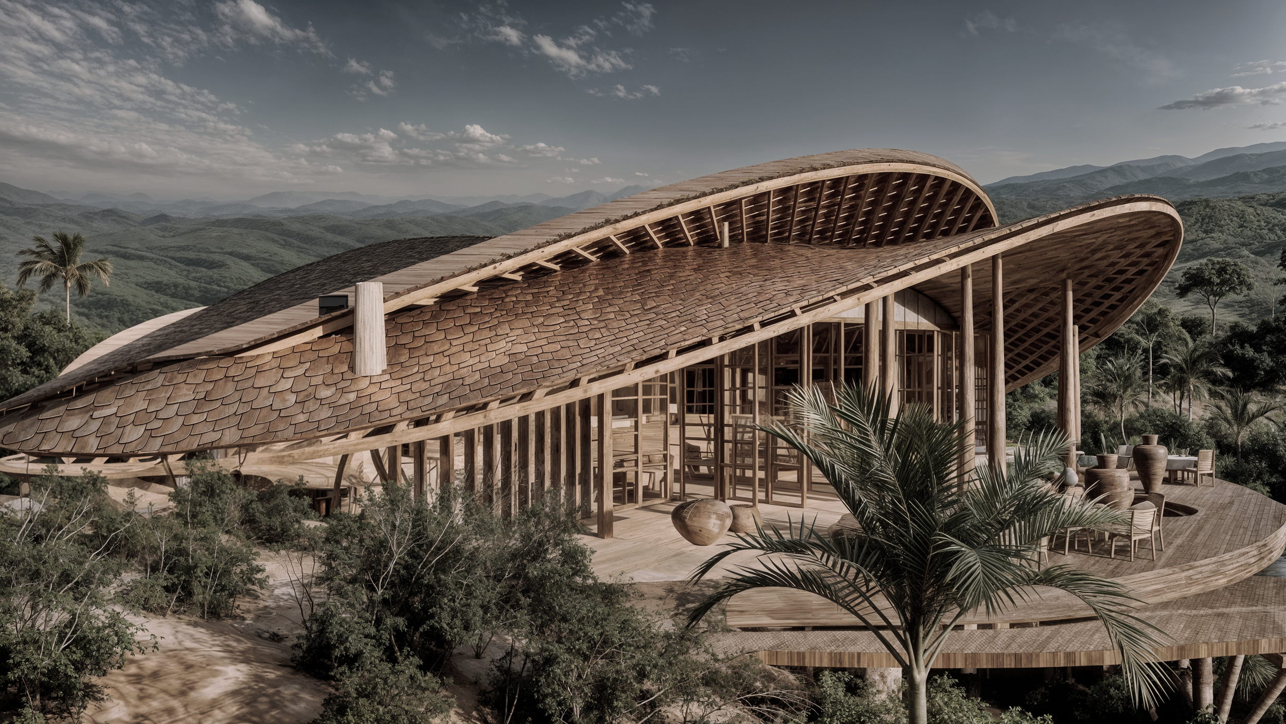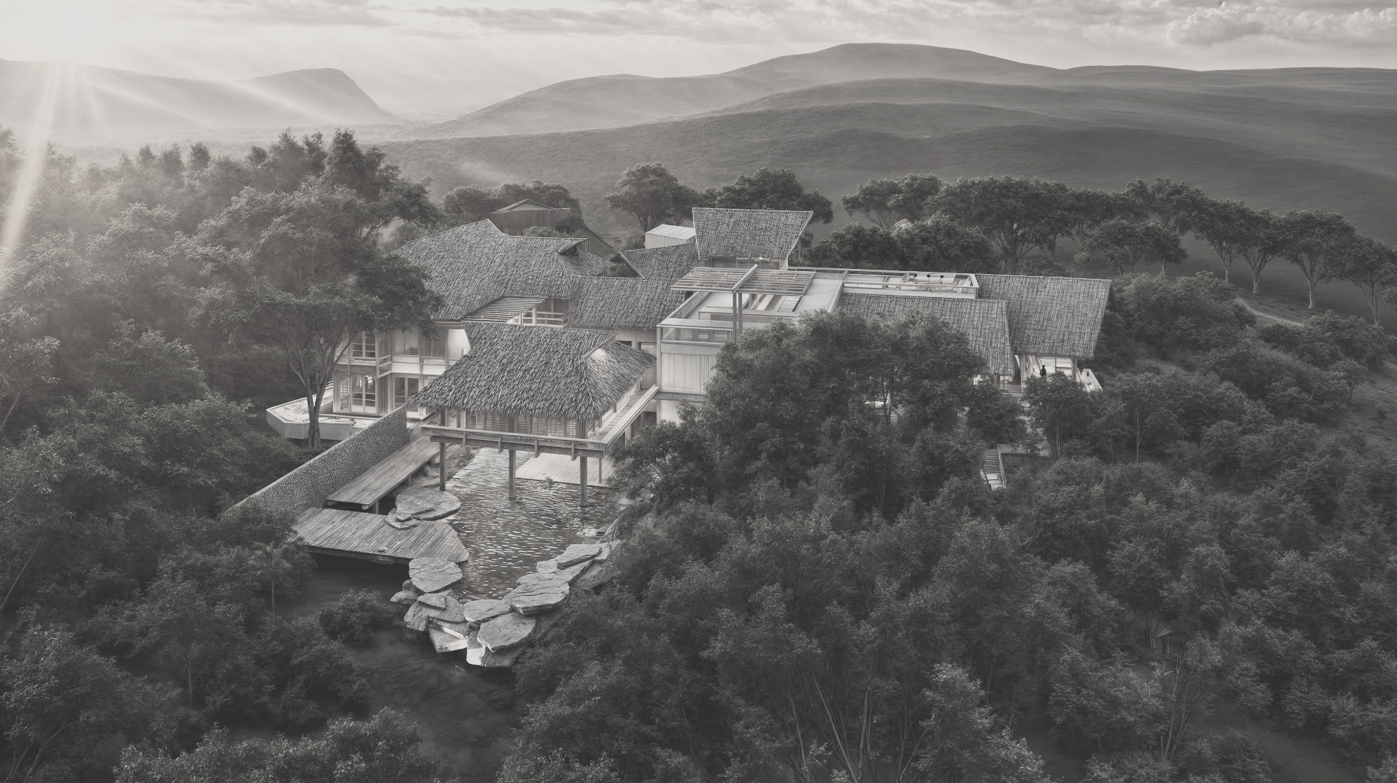 Through measured restraint and formal clarity, vernacular knowledge is translated into a sophisticated contemporary framework, allowing architecture to remain in continuity with the spirit of the ancient forest.