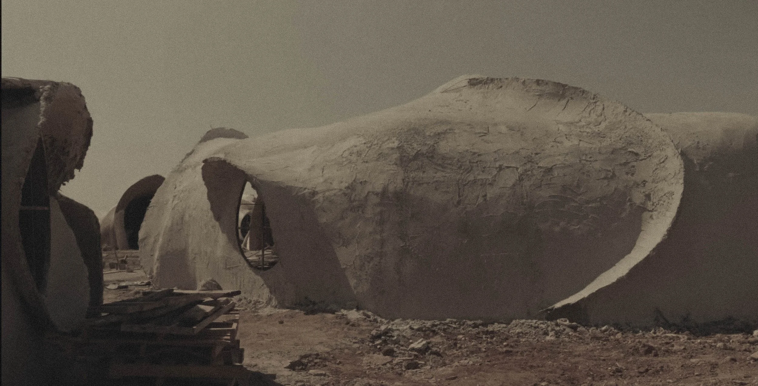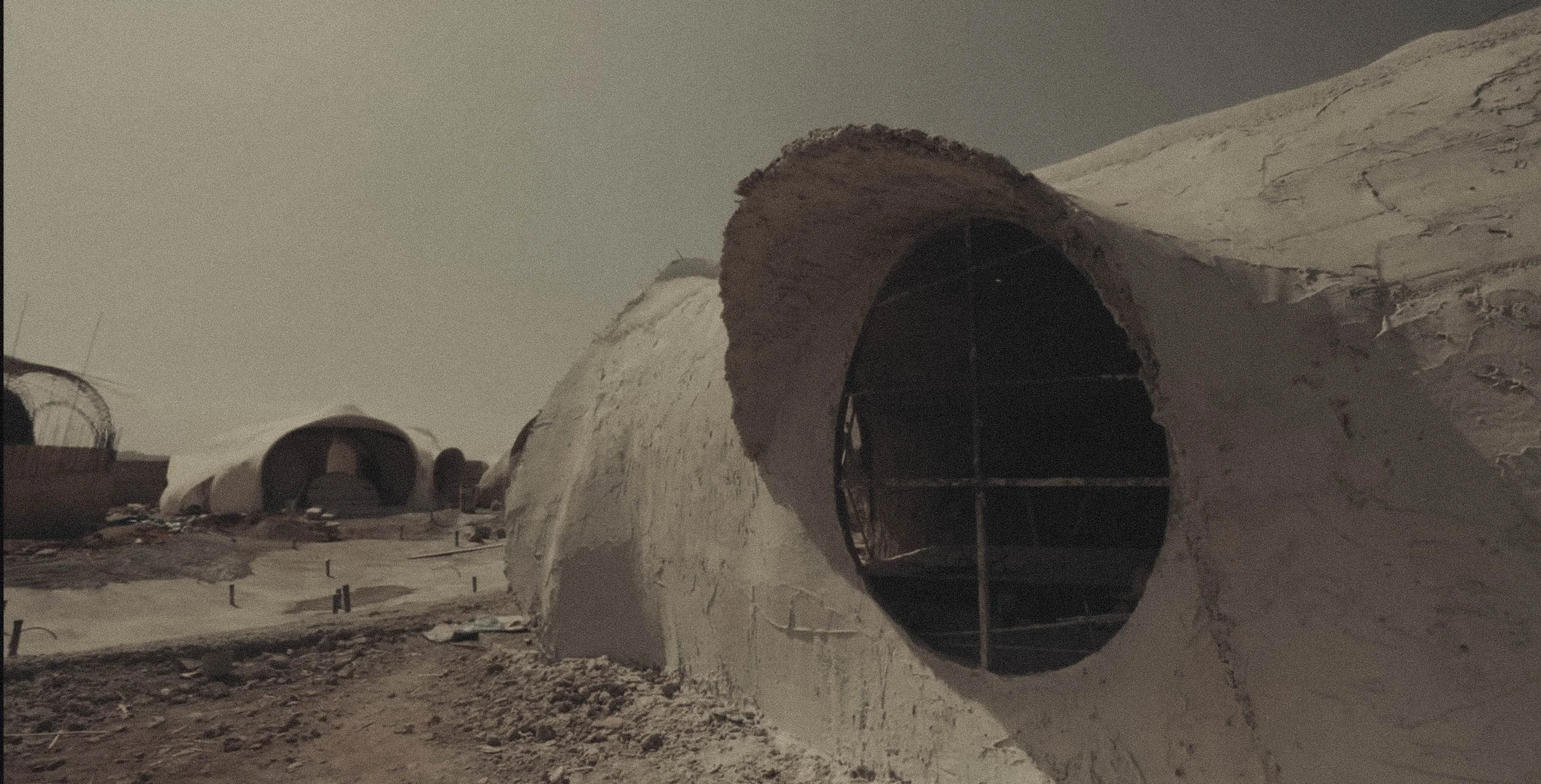 Architecture is conceived as an extension of the desert itself.