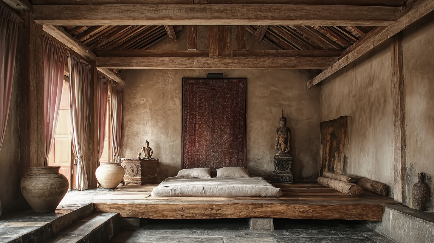 Delicate limestone walls and reclaimed wood surfaces form a calm architectural framework, within which a curated collection of artistic objects from across the Indonesian archipelago is housed.