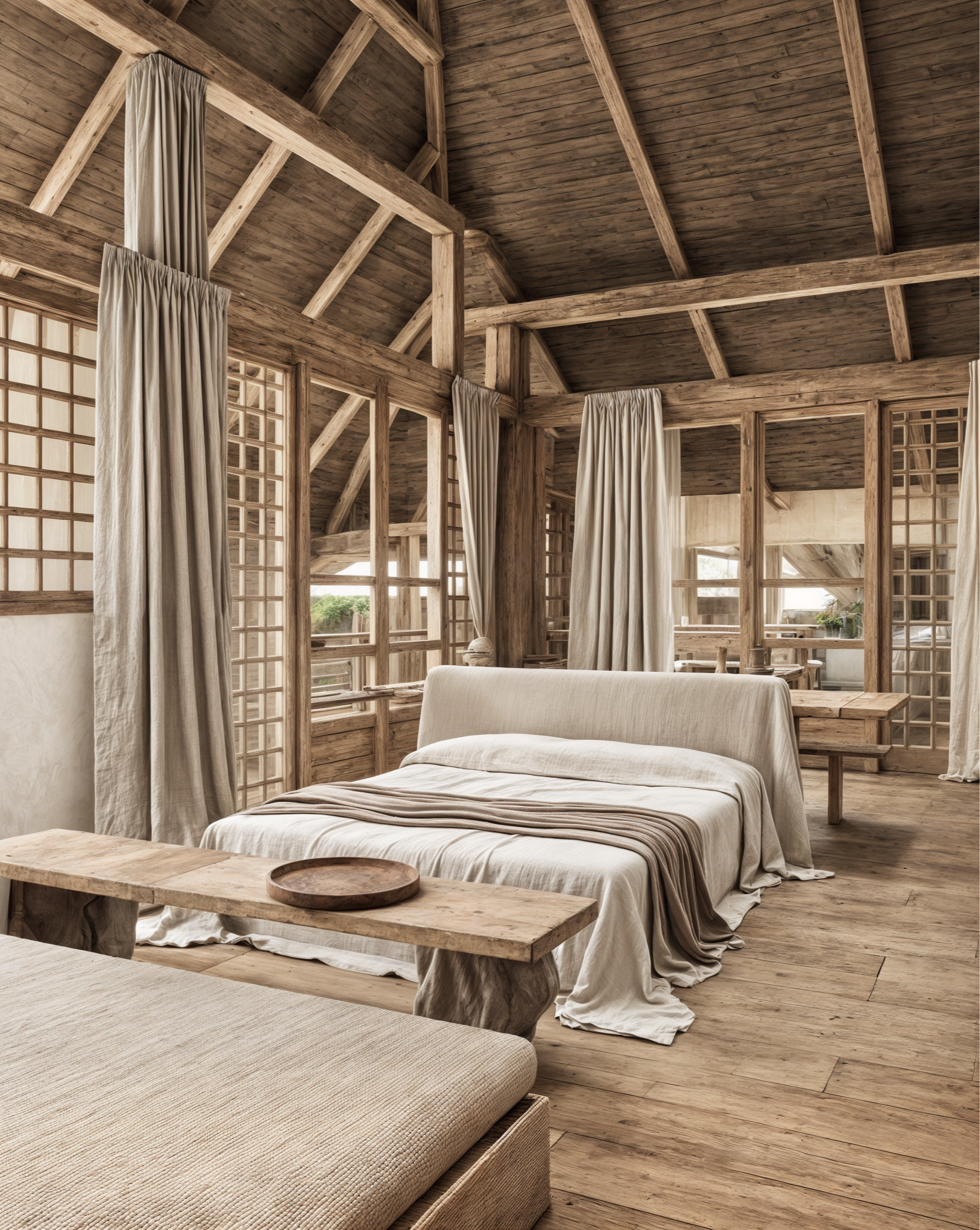 Spatial organization, material selection, and structural assembly are informed by these traditions, allowing the process of building to remain visible and formative.
