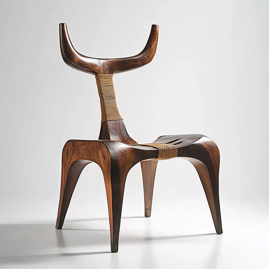 A series of chairs inspired by the Asian water buffalo, whose role in rice cultivation shaped agrarian societies through cyclical systems of labor, water, and nourishment.